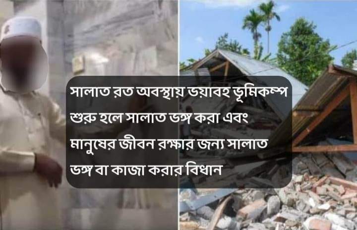 সালাত রত অবস্থায় ভয়াবহ ভূমিকম্প শুরু হলে সালাত ভঙ্গ করা এবং মানুষের জীবন রক্ষার জন্য সালাত ভঙ্গ বা কাজা করার বিধান